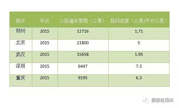 另一方面,虽然郑州天天在修路,造成了巨大的拥堵,并且引起很多市民反感和抱怨,但在交通路网建设方面,郑州也与二线城市存在一定的差距。按照交通路网密度来说,2015年,郑州平均每平方公里只有1.71公里的道路,与别的二线城市存在成倍差距,更不能比伦敦、东京、纽约了,他们的路网密度一般为15~25公里/每平方公里。