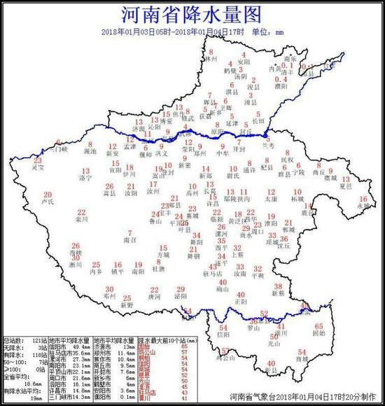 1月3日至4日,除豫东北外,我省大部出现10毫米以上暴雪天气,中南部大部地区出现20毫米以上大暴雪,其中信阳、驻马店和南阳部分县市出现30毫米以上特大暴雪。