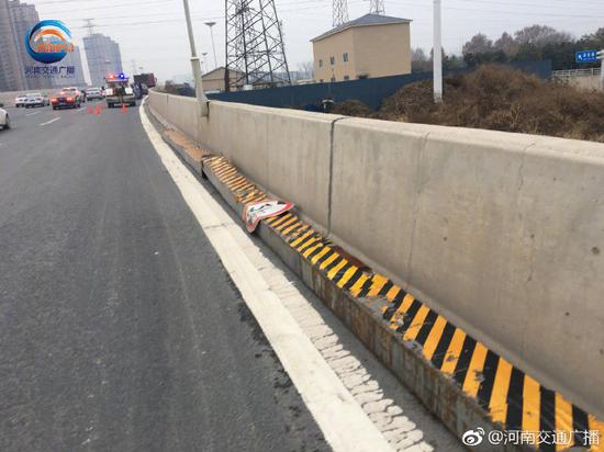 今天15点20左右,西三环化工路一辆货车(有通行证)北向南上桥时将3米高的限高杆撞掉,掉落的限高架砸到了正在通行的两辆私家车,车身有不同程度损伤,好在没有人员受伤。但受到事故影响,后方一度出现拥堵情况。16点30左右记者在现场看到,限高架已挪离到最右侧车道紧贴桥壁,事故车辆也挪离到了最右侧车道,交警正在处理事故,后方设置有反光锥。事故路段车辆通行正常。环快处工作人员表示,最晚明天中午限高架会修复完成。提醒大家遵守交通规则、文明出行。(记者:李芳)