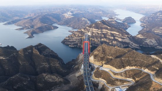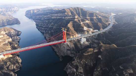 济新黄河三峡大桥横跨河南省济源市与洛阳市新安县交界,地处王屋山、黛眉山世界地质公园,全长1688.5米,主跨达555米。为保护黄河生态和地质遗迹,创新采用独塔地锚回转缆悬索桥结构,实现了工程与自然和谐共生。此次荷载试验模拟了大桥未来可能面临的各类极端状况,检测结果显示大桥各项受力反应稳定,关键数据与理论设计高度契合,印证了其技术创新与工程质量的安全可靠。