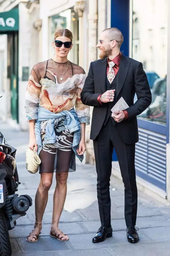 ▼帅气的皮衣和女人味的纱裙,两者看上去风马牛不相及,但是组合在一块却非常赏心悦目,柔美和硬朗的结合体意外地和谐。