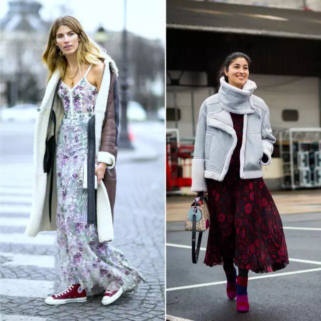 ▼对于天气还很冷的地方来说,在纱裙外面加上厚厚的外套也是实穿度很高的穿法。